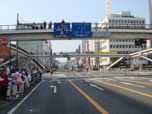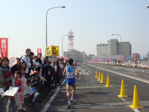 やはり沿道からの応援は多くてとてもうれしい。でも今日はちょっと集中して頑張っているせいもあって、応援に応えている余裕はない。応援が多くて応えてもきりがないということもあるが。風はほとんど気にならないくらいでとても走りやすいコンディションだ。こういう日こそ狙って行かないと仕方ないと改めて思った。