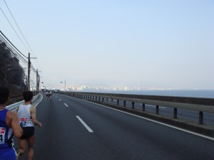 何とか30km地点まではやってきた。この5kmは18分16秒。思ったほどは落ちていない。そして、なぜかまた少しは余力が出てきた。一度抜かれた人たちにも追いつけた。あっちが落ちているのか、こっちの調子がよくなったのかは分からないが。再びシーサイドコースへ。ここからが勝負だ。