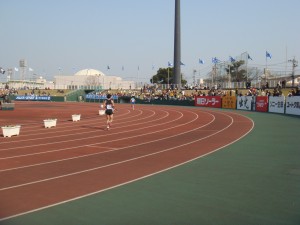舞鶴橋を渡り終え、左折してしばらくいくと、ようやく競技場に帰ってきた。あと1周。長い1周。どうやら何とか自己ベストは出そうだ。もうひと踏ん張りだが力が入らない。