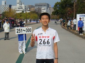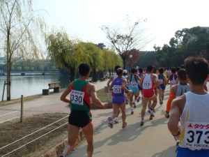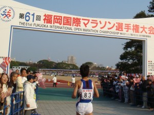 Bグループでもゼッケン番号の若い、つまり速い持ちタイムの人たちは競技場スタートだ。僕は大濠公園スタートの16番目。2列目からのスタート。