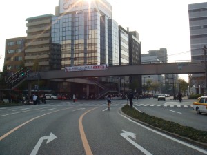 そして、向きが変わって東向きに博多駅を目指す。位置取りは落ち着いたが、単独走行になってしまった。今日は風が弱くて穏やかなのでそれほど致命的ではないけど、気分的には後ろにくっついて走っていた方が楽だ。前に見える集団を無理しない程度に追いかけてみるが、その差は全く変わらない。無理に追いつこうとすると、もうそこで脚がおしまいになってしまいそうなので、そのままの差で置いていかれないようにしてモチベーションを保つことにする。