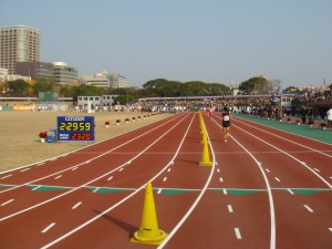 さぁ、平和台の陸上競技場へ。スタートは大濠公園だったけど、ゴールはこの競技場だ。まだ最後まで遅れてくるランナーを拾い続ける。あぁ、2時間30分は切れなかったか。