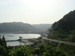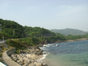 なるべく脚は使わずに、楽して走ろうとはするけど、そんな中途半端なアップダウンではない。結局あまりペースは落とせずに、いつの間にか先頭になってしまったようだ。やっぱり思ったとおりあのペースでは続かなかった。所々で見られる日本海沿いの景色は美しい。リアス式とまではいかないだろうが、入りくんだ海岸線が不思議な形を織り成す。