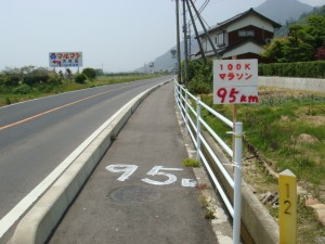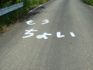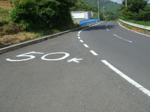 50kmの中間点を通過。3時間40分。このまま行けば7時間20分か。このアップダウンにしてはいいペースだ。そこまで無理した気もしないし。でも今日はそんなに頑張るつもりはないので、ここから楽をしよう。充分手ごたえはつかんだ。満足だ。後はこの暑さにつぶされないように。もう少ししたらアップダウンも終わるはずだし。