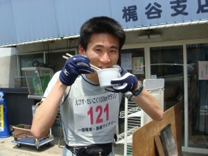 大鳥居をくぐり、川を渡るともうゴールはすぐそこ。何とか予定していた目安の8時間は切ってまとめられたし、100kmマラソンでは初優勝だしで、結果だけ見ると上出来だった。ただ、前半抑えて行こうとしていたのに、全く逆の展開になってしまって後半ばててしまうし、内容はいまいちだった気がする。最近いつも後半でつぶれてしまっているなぁ。あまり良くない癖がついてしまいそうだ。