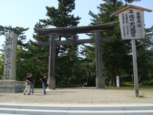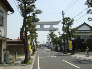 あと1km。最後の坂を上るとそこは出雲大社への参道の前。最後は正面の道を反対向きにまっすぐ。あぁ、あの道の駅がゴールなんだな。一応ウイニングランだ。