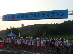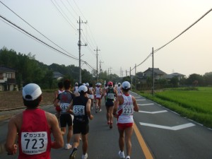そしてスタート。思っていたよりは控えめな展開。さすがにウルトラマラソンだとこんなものか。しばらくは先頭も見える位置で走る。始めだけは平坦。コース全体でも平坦なのはこのあたりだけ。