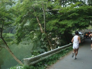 早速上りがスタート。大勢のランナーが徐々に離れていく。結構みんな飛ばすなぁ。20kmくらいの鎌北湖まではウォーミングアップくらいの感じにしたい。それにしても始めからタフなコースだ。抑えてなんていっている場合ではない。気を抜くとあっという間につぶれてしまいそうだ。仕方がないので頑張る。ぐるっと回ってきて鎌北湖に近づく頃には、早くも疲労を感じ始めていた。