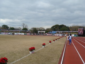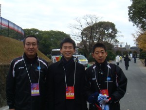 当日、朝ちょっと散歩してご飯を食べて、競技場まで30分少々歩いて行った。やはり寒い。そして、控え室のプレハブでのんびりと過ごした。