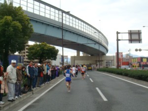 博多の街から西に遠ざかって行きますが、沿道の人並みは途絶えることがなくものすごいです。おまけに走りに集中できるので楽しいです。あとはこのペースが上がってくれさえすれば・・・。
