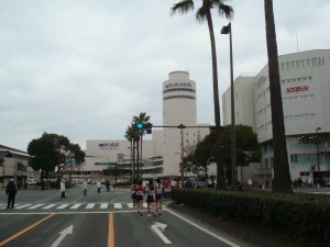 25km前の博多駅前までやってきました。まだ何とか食い下がっています。ランナーの流れから落ちていきそうになったと思ったらまた戻っていけたりと。