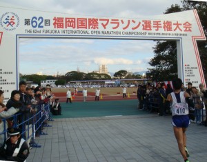日本の男子マラソンで最高峰に位置する福岡国際マラソン。その門戸が広く開放されるようになり、自分くらいのレベルの市民ランナーでも、トップ選手と同時に同じコースを走れるようになった。それでも、AグループとBグループというように、トップレベルの枠はきちんと残されている。Aグループの参加標準タイムは2時間27分。その違いの大きなところは、Aグループのスタート地点が平和台陸上競技場で、Bグループのスタート地点が隣の大濠公園であるということだろう。平和台スタートは、まさに選ばれし者といった感じがする。