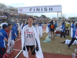 去年この大会でベストを出した3日後。肝臓の異常が分かりました。心臓の異常からくるもので、一時はもう走れないかとも思いました。それからいろいろ苦しみました。疲労骨折もしました。走ることについての考えも変わってきました。フルマラソンを頑張るのはもういいかな、とも思いました。でも、またここを走ってよかったです。気持ちいいです。またここでいい走りをしたいと思いました。また頑張ってみよう、と。