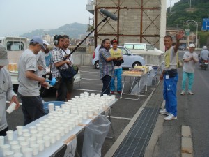 因島といえばみかん、かな?名物のみかん絞りたてジュースが飲めるエイドに到着。とてもおいしかった。はっさくは因島が発祥らしいけど、みかんやオレンジとの違いは何だろう?この島には80種類以上の柑橘類があるらしいけど、違いが全然分からない。