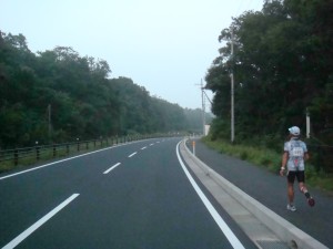 ところが、頑張ってくっついてくる若いランナーがいた。自分より少し若いらしかった。ウルトラマラソンでは、自分と同じくらいの年のランナーが少ないので、若いランナーを見つけるといつもうれしくなって話をしてしまう。きつそうではあったけど、まだ走りはしっかりしている気がしたので、励ましながら走っていた。彼は引っ張ってもらっているといっていたけど、実は自分に言い聞かせるように励まし続け、むしろ自分の方が押してもらっているような気もしていた。きつい上りでも気持ちが切れないように。