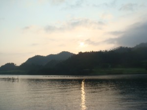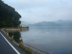いきなり始まる最初の峠越え。まずは抑え気味で峠を越えるも、まだ辺りは暗い。空気もまだひんやりしている。でも空には星がきれいに見えていて、日中は暑くなりそうな雰囲気が感じられた。峠を下って10kmを通過。50分をちょっと切ったくらい。そこまでのんびりというわけではないつもりだけど、速くない。今の状態はこんなものなんだろう。しばらくは大きなアップダウンなく久美浜湾に向かう。