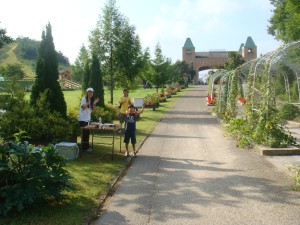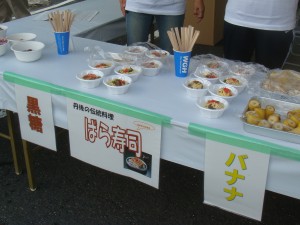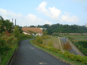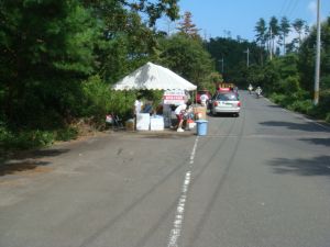 丘の上にあるあじわいの郷をぐるりと一周する。園内の私設エイドでコーラを勧められたが、秘密兵器投入にはまだ早い。今年はあじわいの郷のエイドは賑やかでなかった。そういえば、去年ここで盛り上がっていた協賛の会社の名前が今年は見当たらない。ちょっと物足りなさを感じながら、あじわいの郷を後にして先へ進む。55km過ぎにあるのは弥栄町役場のエイドだ。ここには梨やぶどう、そして名物のばら寿司があった。もちろんおいしくいただいた。そして梨をつかみ取りして進む。