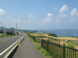 それにしても今日は海がものすごくきれいだ。白い砂浜。緑色のグラデーションがかかった青い海。複雑な海岸線。先導車。感激だ。写真を撮る余裕はあまりないけど、これは写真を撮らないともったいない。基本的には先導車の後ろ、左側通行で走っているけど、写真を撮りにあっちへうろちょろ、こっちへうろちょろ。