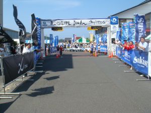 アミティ丹後をぐるっと回って、いよいよ帰ってきたぞ。多分ゴールした後にインタビューがあるんだろうな。何て言おうかな。うーん、何も思い浮かばないぞ。頭はボーっとしている。そして、聞き慣れた声でアナウンスされ、ついに初めての丹後の優勝のゴールテープへ。
