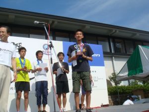 もうなんて答えているかもよく分からない。とにかくうれしい。そしてその後は新聞社や雑誌のインタビュー。その間に、2位のゴールのアナウンスが。げげっ、そんな近くにいたんだ。最後きつくても手を抜かなくて良かった。
