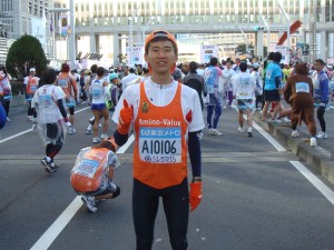 僕は元々この大会に申し込んでいなかったのだが、所属している「club MY☆STAR」のチームスポンサーである大塚製薬からスポンサー枠で走らせてもらえるという話があり、喜んで走らせてもらうことになった。もちろん「Amino-Value」の名前をつけてオレンジ色のウェアを着て走る。