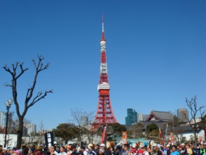 皇居の片面をぐるりと周り、目の前に東京タワーを見ながら皇居を後にする。とってもいい天気だ。日差しを浴びると少し暖かい。