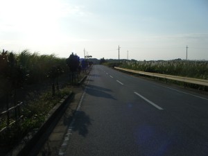 長い橋を渡り終える頃に日の出を迎えました。とてもきれいです。その後しばらく海は見えなくなりました。美しい景色に感激し、声をかけながら走っているうちに、自然とペースが上がってしまいました。後ろとの差が広がっていきます。もう少し我慢した方がいいとは思いましたが、今回はタイムを狙うわけではないので、気持ちよく走ろうと思いそのまま行きました。