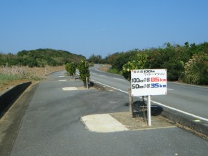この同じコースで、翌日も100kmマラソンが行われます。ただ、スタートゴールが違う場所なので、今回のとは違う距離表示がありました。ただ、距離表示は違えども相対的な距離はある程度分かるので、少し参考になりました。