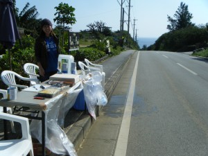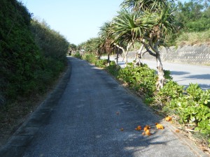 半分の50kmを越えましたが、まだ平気そうです。天気や気候はいいし、景色も最高でとても気持ちよく走れます。本州とは全然違う景色です。サトウキビ畑が本当に多いです。収穫しているおじいちゃんやおばあちゃんもたくさん見かけました。みたことのない実もたくさんなっていました。