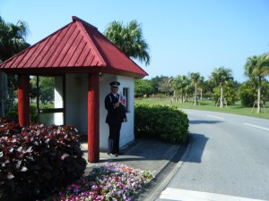 島に戻るとあと2km。もうゆっくりいっても7時間30分は切れそうだし、無理せずゴールを目指しました。そしてホテルに戻ってきて、いよいよゴールです。ほぼ順調に帰ってくることができました。守衛さんも旗を振って迎えてくれました。