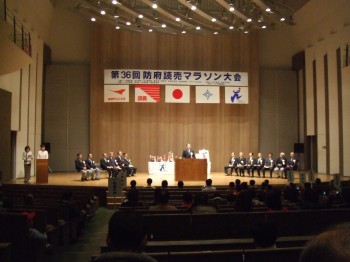 前日の開会式に出席するため防府に降り立ったが、晴れてはいるもののとにかく寒い。そして風が強い。こんな天候の中は走りたくないぞ。開会式は去年感じたほどの感動はなかったが、やはり立派なものなので身が引き締まる思いがした。やはりこういう大会もいいものだ。