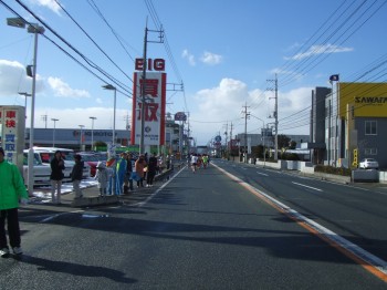 防府駅の裏はさすがに声援が多い。ペースも良いし、デジカメを構えるとうけがいい。ベストを出したときより少し遅れてはいるが、あのときより余力は多い気がする。