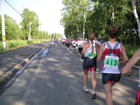 ここあたりはまだ余裕のペースで走っているので、同じペースで走っているドイツの女性ランナーと国際交流。一応僕の英語も通じようだ。せっかくなので外人ランナー(各国代表選手だが)に積極的に話しかける。さすがワールドカップ。