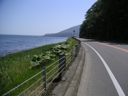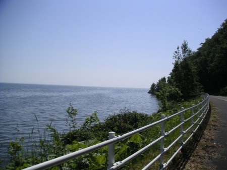 ときどきオホーツク海も見える。湖内は穏やかだが、オホーツク海の波は荒々しい。対照的な顔がどちらも見えるのでおもしろい。でもあと4kmって言われても実感ないぞ。前へ行けばいいんだろ。行けば。