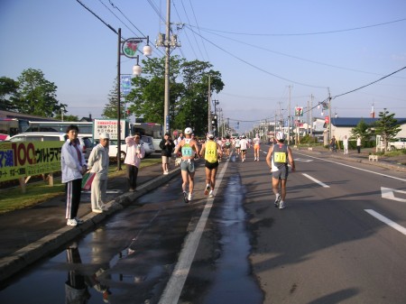 そしてこっちは15km。向こうは20km地点でトップとすれ違う。ワールドカップなので世界チャンピョンだ。ものすごいペースで走っており、あんなペースで100kmも持つのか?と思ってしまう。しばらくすると自分も折り返し。