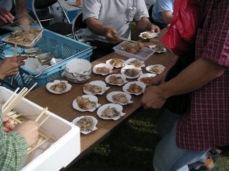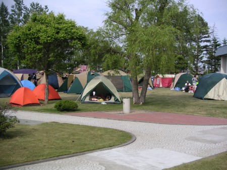 釧路空港から北海道に上陸し、レンタカーで大会会場まで移動。北海道はでっかくて気持ちがいい。またこんな道を自転車で走れたらなぁと思った。寄り道をしながら受付会場に着くと、サロマ湖産のホタテをただで配っていて食べることができた。みんなで焼きながら。とってもおいしい。また、会場にテントを立てて泊り込んで準備している(というか楽しんでいる)人たちが多くてびっくりした。