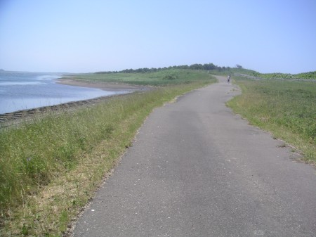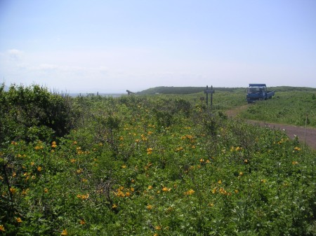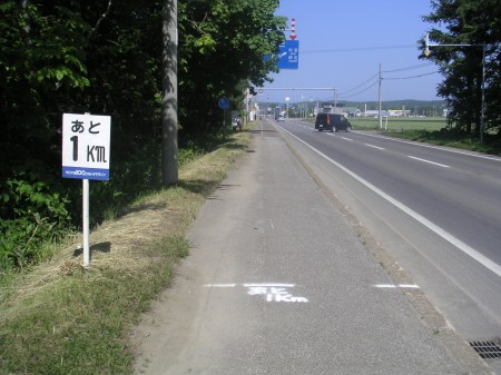 あと2kmくらいのところで、やっと原生花園を抜け普通の道に出る。ようやくあと少しという実感がわいてきた。頑張ろう。