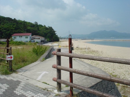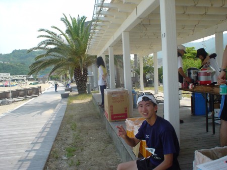 その次のエイド、55km付近は海や砂浜ののきれいな海水浴場。でも誰もいないぞ。設備もぼろいぞ。いつでもすいてそうだ。
