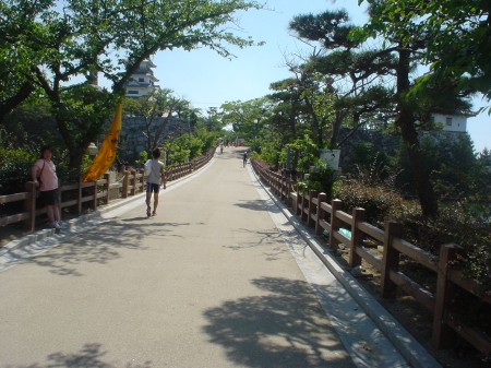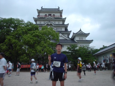 そしてついに見えてきた、今治城。素晴らしく立派な城に見えるのはようやく走り終えることができるという気持ちが強いからなのか。お堀に中の道を進み、お城の下のゴールまであと少しだが、ここにも上り坂が。もう走れない。そして最後だけは何とか走ってみる。