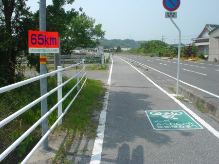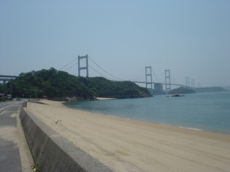 この橋を渡るには、原付50円、自転車10円かかることになっているが、箱がおいてあるだけだった。走行者は無料。向島ははじめは生活感のある町で、本州の延長という感じだったが、次の島が近づいてくると次のきれいな橋が見えてきたり、海沿いを走ったりしているとやはりそれなりの雰囲気がある。30km通過もやはり同じペース。ペースを落とさなくてはと頭では分かっているのだが、体が反応しない。軽快に走ってしまう。どこまで持つのか。