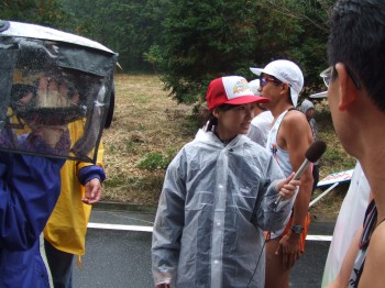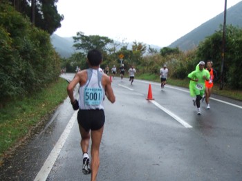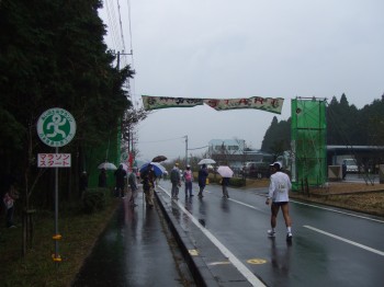 会場入りしたときには、雨がぽつぽつ降ってきた。そして風が強い。雨はそれほど気にならないが、風が強いとかなり走りにくいので気になる。まさに「あいの土山雨が降る」だ。スタートを待っていると、徐々に雨風が強くなり、体が冷える。体が吹き飛ばされそうなほど風が強い。モチベーションが下がってしまいそうだ。