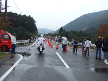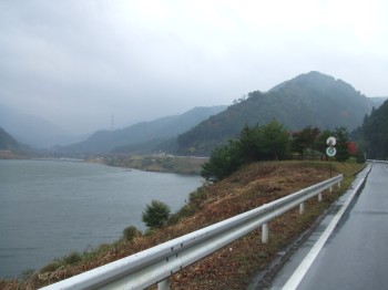 女子のスタートの5分後、男子がスタート。始めの10kmまでは上りなので、多少抑え目に行くつもり。5kmの入りは19分42秒。多少の上りと向かい風のわりにはまずまず。しかし、ここからが戦いの始まりだった。ダム湖に着き、見通しが開けるとものすごい向かい風が。歩くのも困難と思われるが、いきなり歩くわけにも行かないので何とか走ってみる。でも進まない。抑え目に行っている場合ではない。早くも力を振り絞って前へ進む。