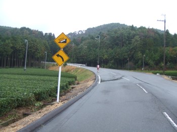 これは20km付近の突然とんでもない坂が来たところ。10%の勾配を上った後10%の勾配を下る。わざわざこんなところをコースにしなくても。たしかにお茶畑が広がっていていいところかもしれないが。