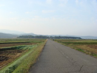 すぐに辺りが開けた田んぼの中を走るようになる。徐々に空が明るくなってくる。今日はいい天気になりそうだ。暑くなるのかな?天気がいいと景色は楽しみだけど、あんまり暑くなるのはやめて欲しいな。