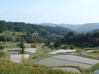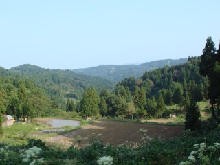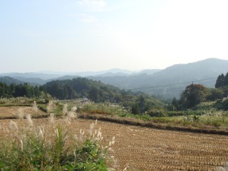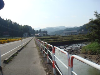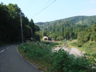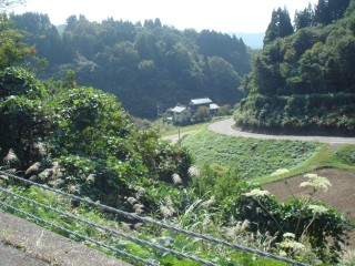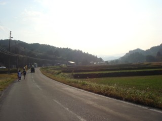 何とか坂の頂上まで上りきると、「よくここまで上って来たな」とおもえるようないい景色が待っていた。この辺はアップダウンが多いので、田んぼは段々の棚田が多く見られる。もうお米は刈り取られた後で、僕の胃袋に入っているのだろう。激しい上りの後は、激しい下り。あまり脚に衝撃を与えないように抑えて下っているつもり。でもお腹にも衝撃が大きく、たくさん食べた後にお腹が揺すられるのでお腹が痛くなる。しばらく何度もピットインすることになる。