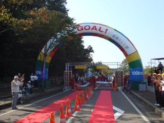 ゴールテープに向かってデジカメを構えて走っていくいつものパフォーマンス。会場が沸く。無事最後まで走り通せ、到着。