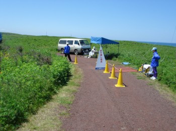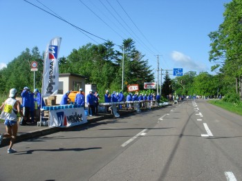 大会前日、新千歳空港からレンタカーでサロマ湖へ。スタート地点で受付を済ませてゴール地点へ。車中泊。夏至近くの北海道と言うことで、夜8時になってもまだ真っ暗にならない。ちなみにゴール地点の常呂町は、トリノ五輪のカーリング選手の出身地ということでも有名。カーリング場もある。