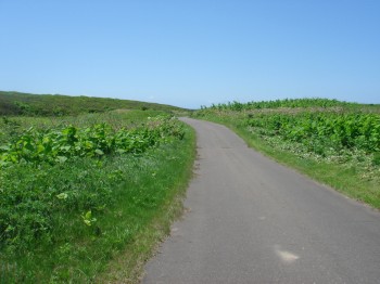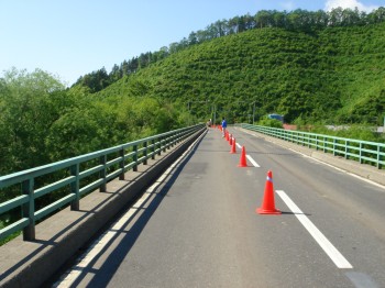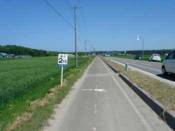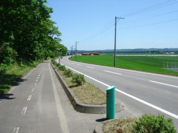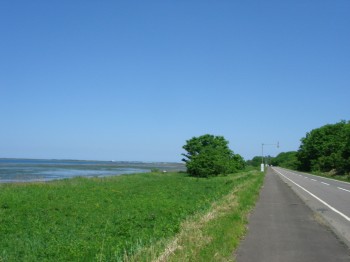ワッカ原生花園は何もない一本道。時々くねくね、アップダウンも多少あり、路面の細かな上下もずっと先まで見える。いいところではあるが、ラストでもなければ気持ちをつなぐのが大変だぞ。特に、行きはさんさんと輝く太陽に向かって走らなくてはならない。3kmおきくらいにある給水所が頼りだ。