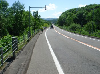 75km付近のエイドでは、どうせ走れないならと、初めて固形(?)食を口にする。そうめんを2杯、レモンをひとかけら。これがあとで効いてきたのかも知れない。わずかな上りでも、上りはきつい。平坦と下りで少しでも走る。これはネイチャーランのときのアドバイスだ。80kmからのワッカに入れば何か変わるかもしれない。
