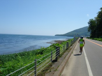 大会が行われるサロマ湖は、北海道の北東に位置し、一部が海とつながっている北海道一大きな、日本でも3番目に大きな湖である。基本的には湖沿いということで比較的平坦なコースで、ハイライトはラスト20kmのワッカ原生花園である。海に突き出た原生花園は、右に外海、左に湖と雰囲気の違う海が同時に見える草原である。そこを10km行って帰ってくる。多くのランナーとすれ違うことができる、余裕があれば美しい場所だ。